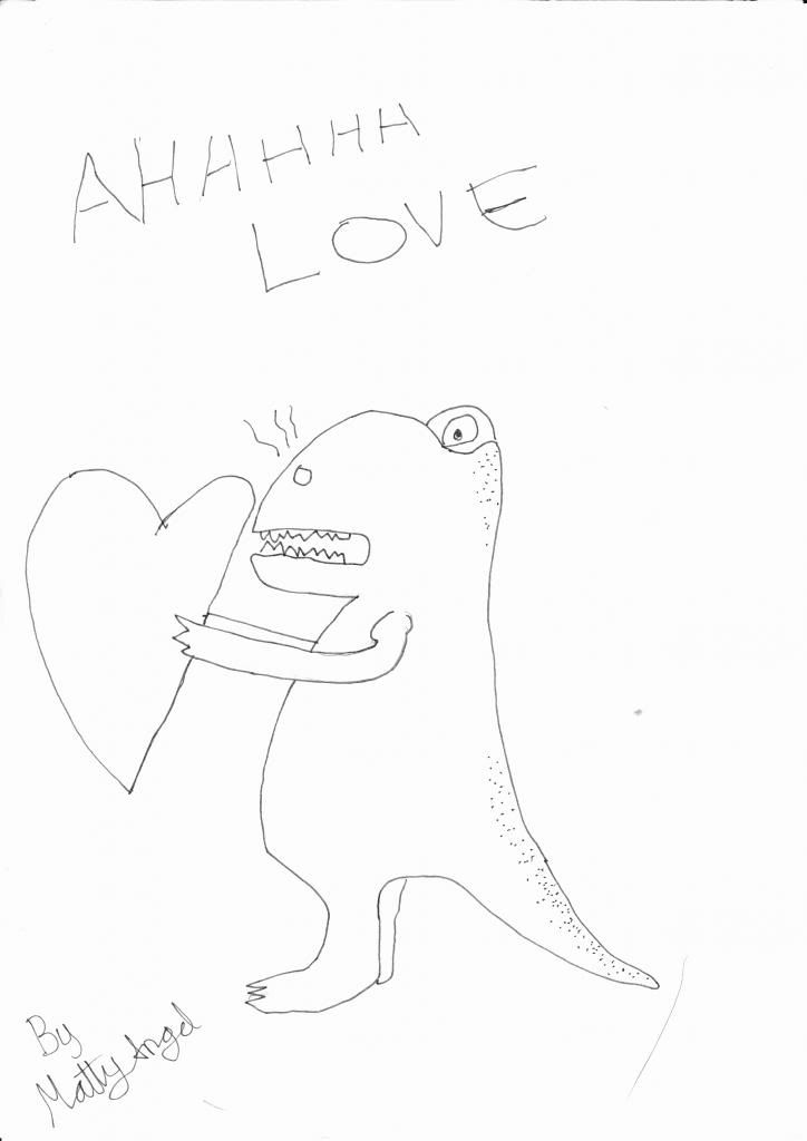 First up is a Hugsaur that found love, he is actually an old drawing but I finally inked and tidied him up, and gave him spots. Dinosaurs look cute with spots. Especially Hugasaurs