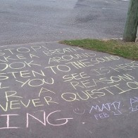 July 8th, 2012 | ART | Matty Angel | 5 CommentsSO! Some of you have been asking for a while when I will do some more street writing. But I haven’t been able to while its been winter… but today! There was finally enough sun! So I spent sometime outside today doing some fun chalk drawings and poetry! I hope it makes people walking by […]